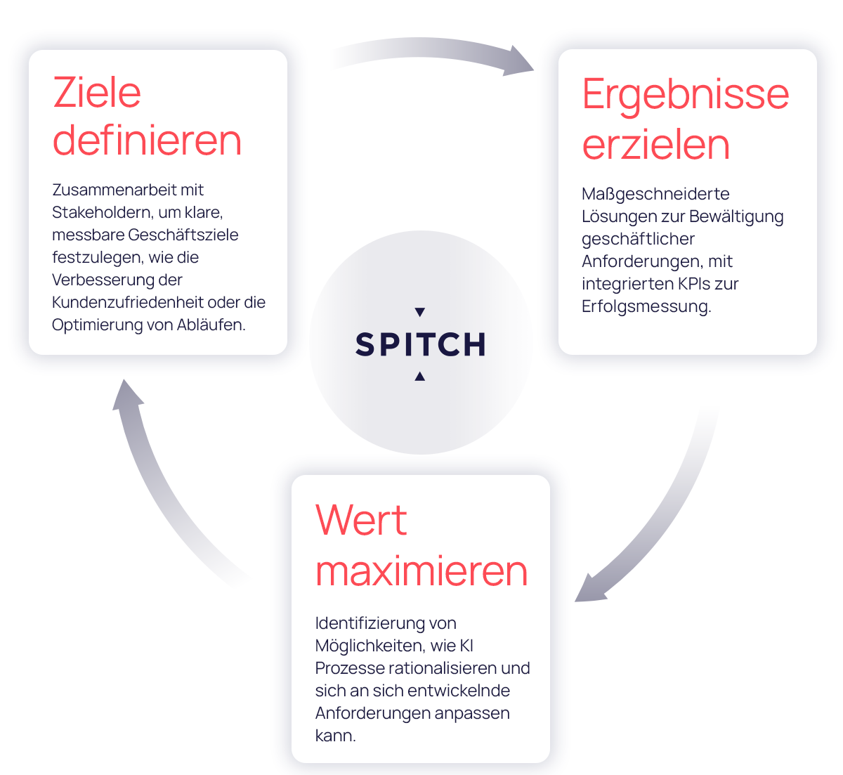 Seitdem wurden die strategische Beratung und die professionellen Dienstleistungen von Spitch verfeinert, um gut strukturierte und reibungslos ablaufende Implementierungen zu gewährleisten. Unser Ansatz basiert auf den folgenden drei Säulen: