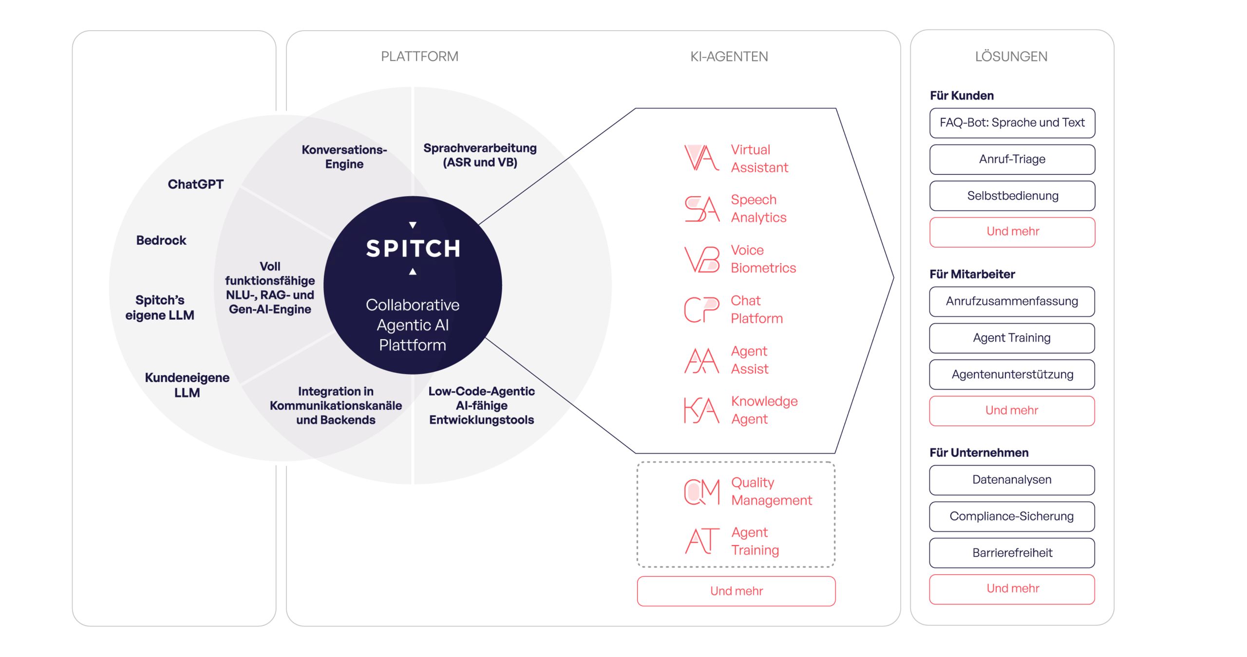 Seit mehr als zehn Jahren entwickelt Spitch kontinuierlich unsere proprietären Technologien und Orchestrierungsplattform weiter, einschließlich der Ergänzung um menschenähnlichen, KI-gestützten Selbstservice und personalisierte Unterstützung.