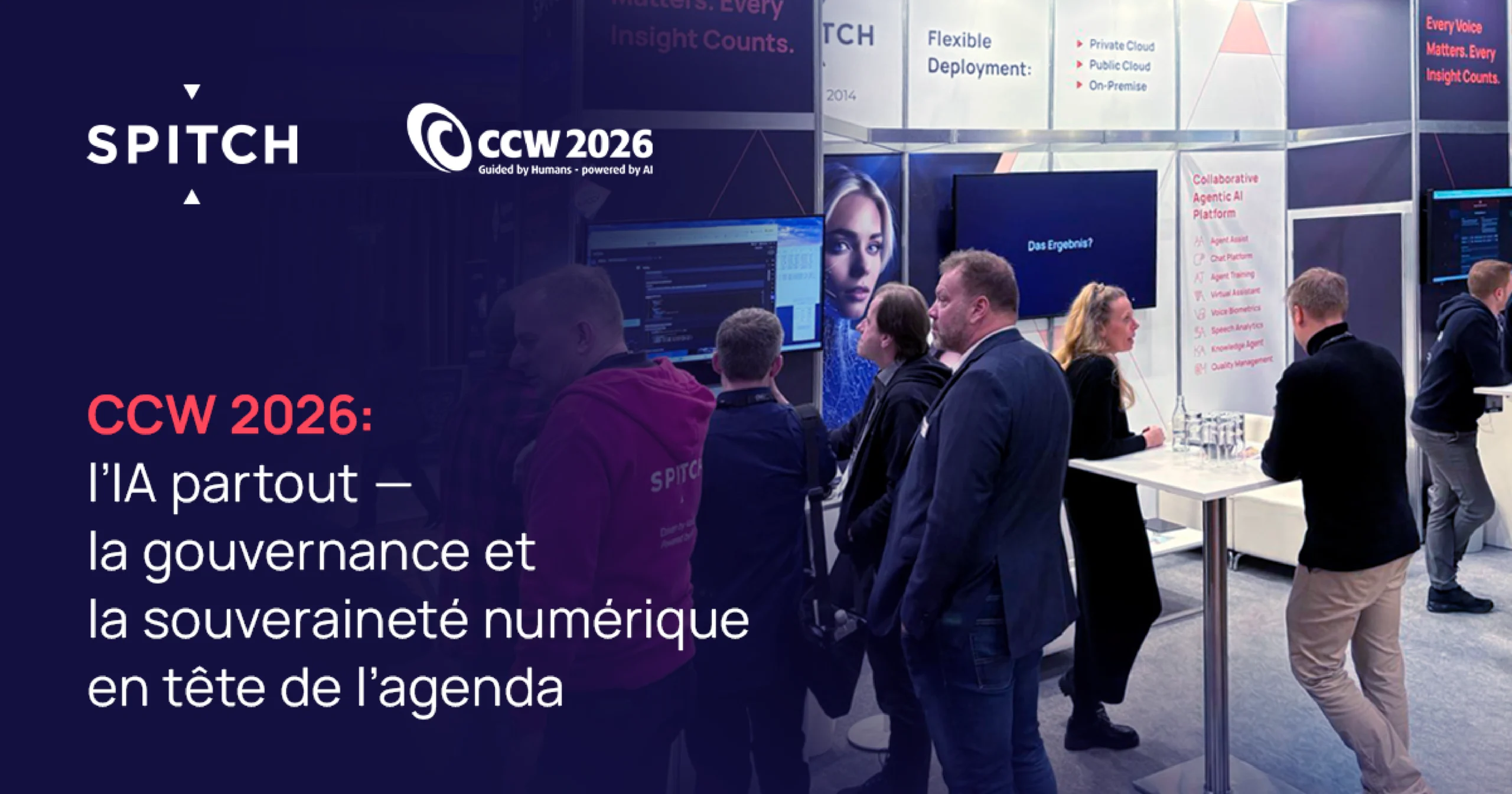 L’un des signaux les plus forts à CCW 2026 a été la montée de la souveraineté numérique au sommet des priorités stratégiques. L’équipe Spitch a constaté que de nombreuses entreprises européennes privilégient désormais le contrôle des données et la conformité européenne comme facteurs décisifs dans le choix des technologies. Dans un marché où les fonctionnalités d’IA se ressemblent de plus en plus, la souveraineté, l’alignement sur le RGPD et la capacité à opérer selon les attentes réglementaires européennes passent du « nice to have » à des exigences stratégiques au niveau du conseil d’administration.